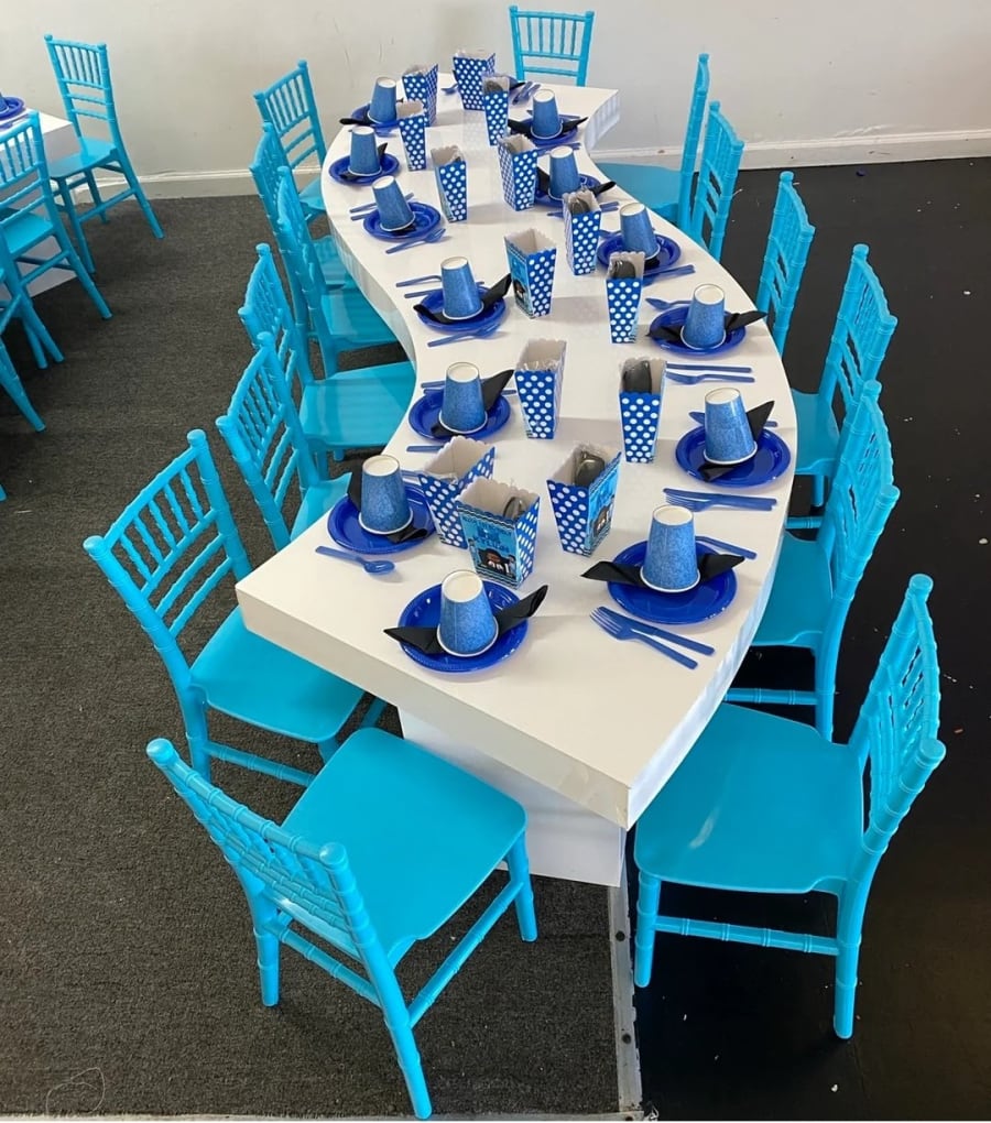 Our blue Chiavari chairs for kids are more than just seating; they're a style statement! With their elegant design and sturdy construction, they are ideal for both indoor and outdoor use. These chairs are lightweight, making them easy to move and store away. Plus, their durable design ensures they can withstand all the playtime antics of children, offering both reliability and style. πŸͺ‘